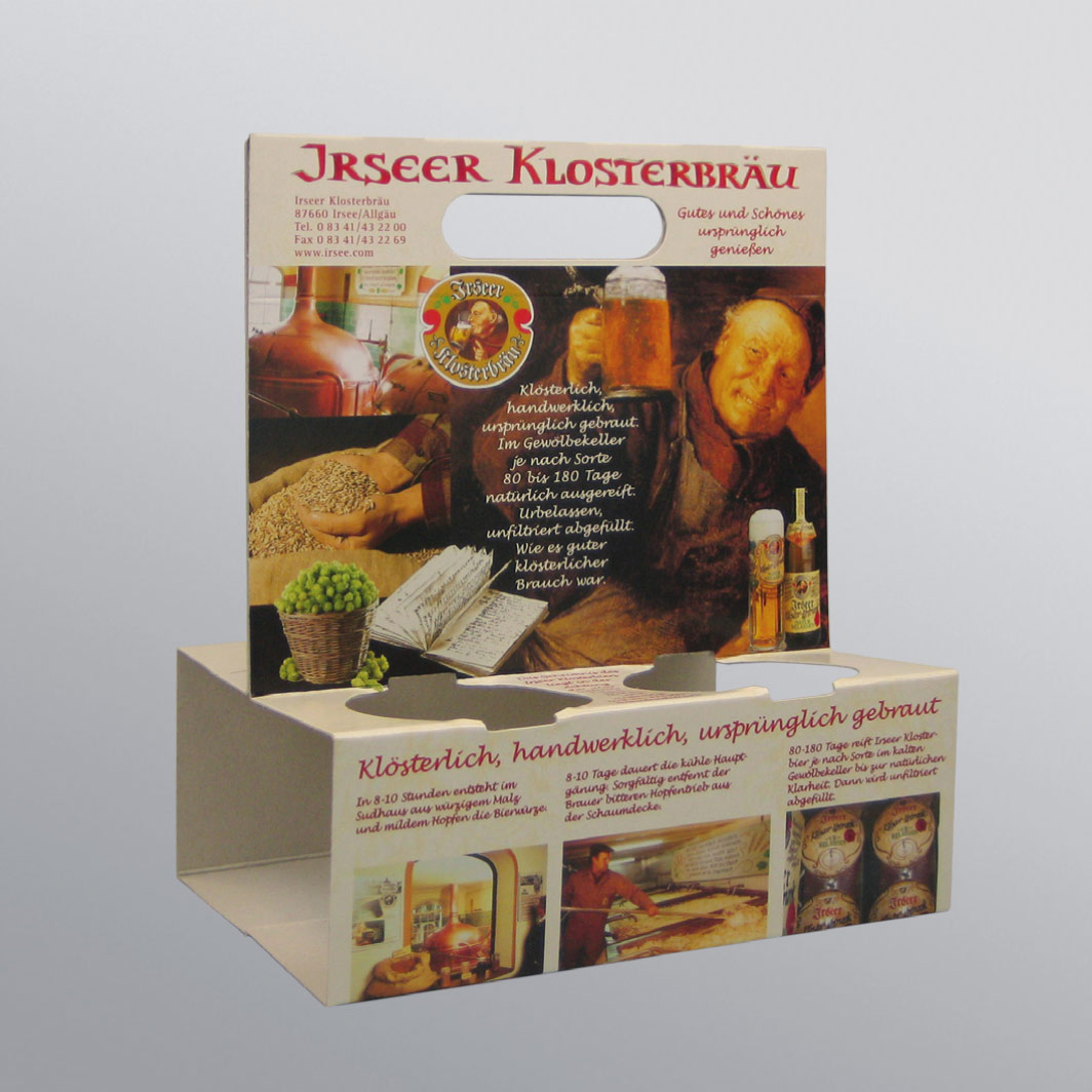 Beim Transport von Flüssigkeiten wie Getränken kommt schnell viel Gewicht zusammen. Kartons für Gertränkeverpackungen fertigen wir deshalb aus besonders stabilen Kartonagen.